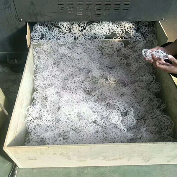 pp生物填料是以PP為主要原料製作的一種生物填料,具有生(shēng)物親(qīn)和性,如有做改性處理,易掛(guà)膜。常常加工成階梯環形填料,用於汙水處理(lǐ)或者工廠化養殖的MBBR環節中。